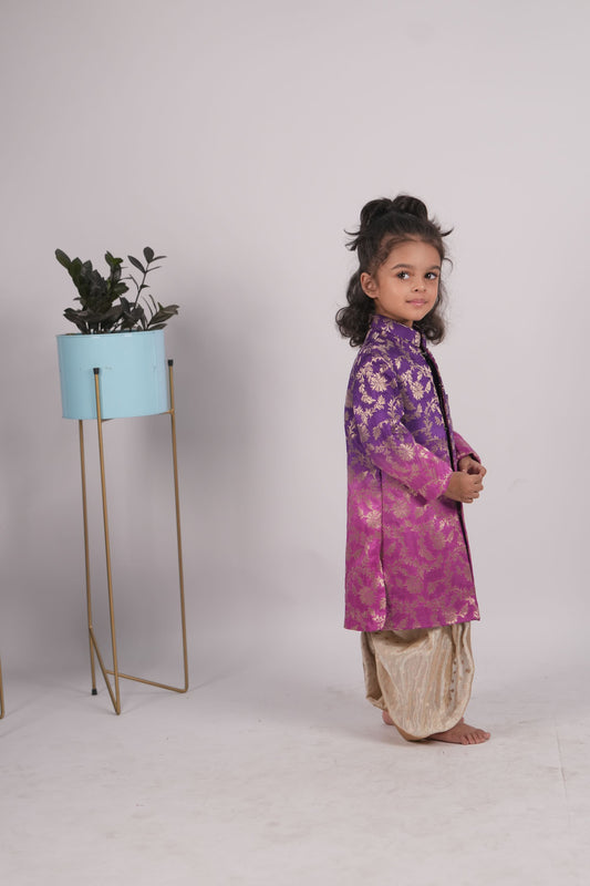Boys purple and pink gradient Dhoti-Sherwani set KW057