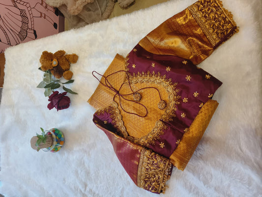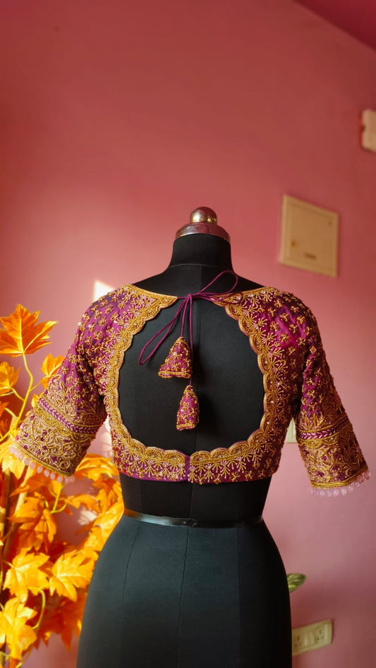 Purple Aari work round cut blouse