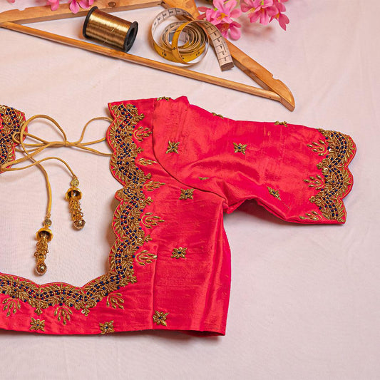 Pink scallop design handwork blouse
